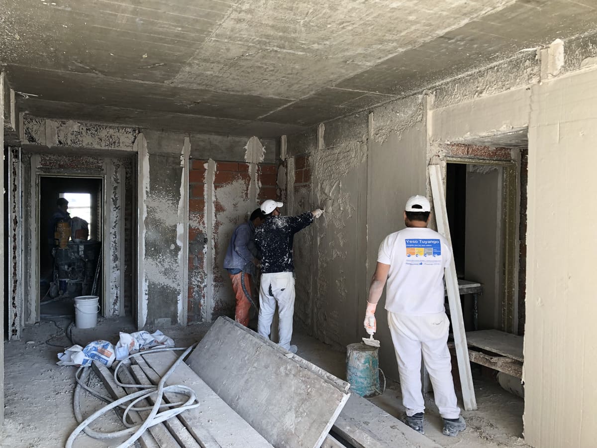 - Tareas Realizadas: Cielorraso armado esperando el yeso, Yeso proyectable en paredes y techos.