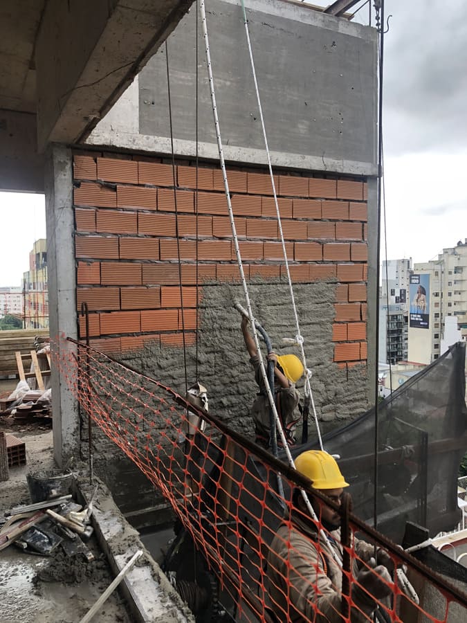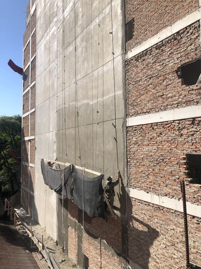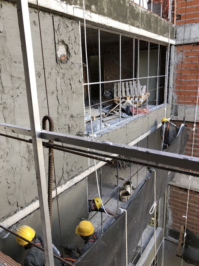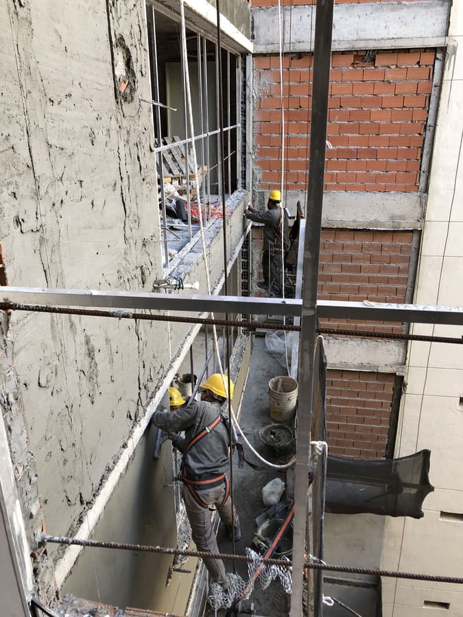 Quo zapata es una obra en la que enfrentamos el revoque proyectable en altura en sectores medianeras, el edificio contaba con 12 pisos de altura donde realizamos la proyección de las paredes exteriores. El trabajo realizado se coordinó con el jefe de obra a cargo acompañado con los operarios de producción de belcarp.